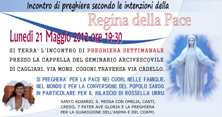 Incontro di preghiera settimanale del gruppo Amici di Medjugorje in Sardegna Lunedì 21 Maggio 2012 14 lunedì Gen 2013 Dimensione originale su 762 × 401 ≈ Lascia un commento Locandina Incontro di Preghiera Settimanale del 21 Maggio 2012