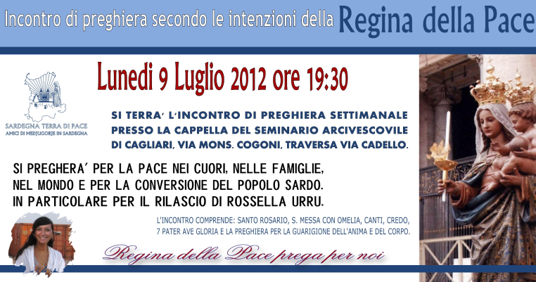 Incontro di preghiera settimanale del gruppo Amici di Medjugorje in Sardegna il 9 Luglio 2012 14 lunedì Gen 2013 Dimensione originale su 762 × 401 ≈ Lascia un commento Locandina Incontro di Preghiera Settimanale del 9 Luglio 2012