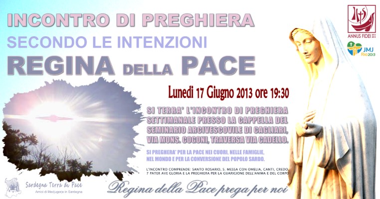 Incontro di Preghiera Settimanale: Lunedì 17 Giugno 2013 14 venerdì Giu 2013 Dimensione originale su 1000 × 526 ≈ Lascia un commento Locandina Incontro di Preghiera Settimanale del 17 Giugno 2013 [ Medjugorje: Foto di Maria Pina S.]