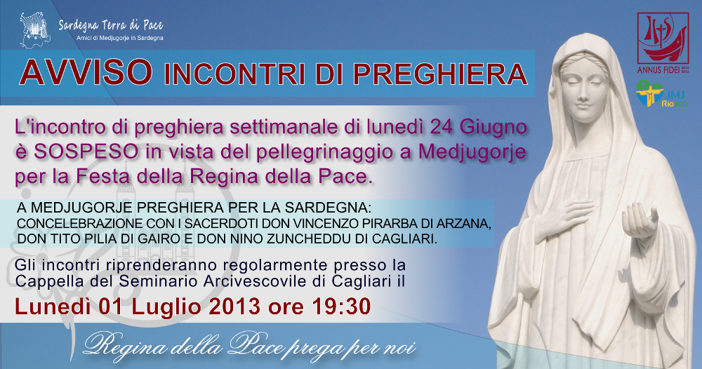 Incontro di Preghiera Settimanale: Avviso di Sospensione 20 giovedì Giu 2013 Dimensione originale su 1000 × 526 ≈ Lascia un commento Avviso Incontro di Preghiera Settimanale del 24 Giugno 2013