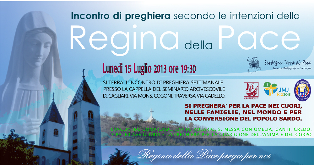 Incontro di Preghiera Settimanale: Lunedì 15 Luglio 2013 12 venerdì Lug 2013 Dimensione originale su 1000 × 526 ≈ Lascia un commento Locandina Incontro di Preghiera Settimanale del 15 Luglio 2013