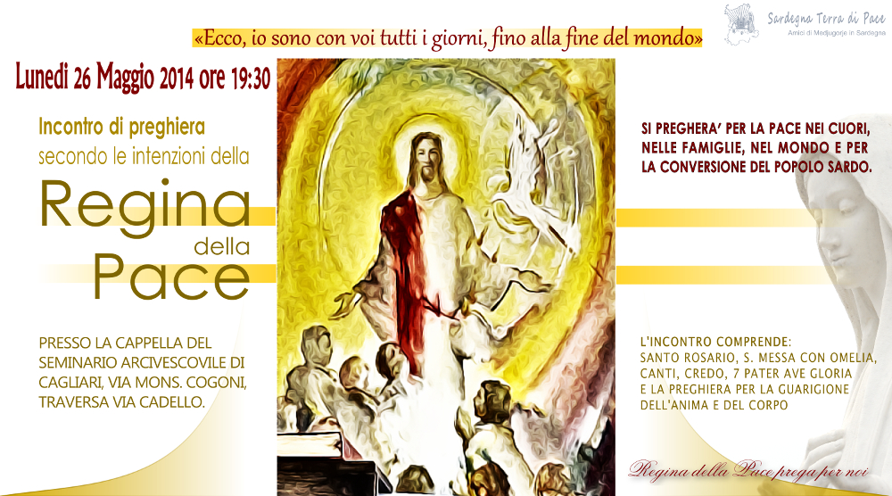 Incontro di Preghiera Settimanale: Lunedì 26 Maggio 2014 24 sabato Mag 2014 Dimensione originale su 1000 × 556 ≈ Lascia un commento Locandina Incontro di Preghiera Settimanale del 26 Maggio 2014