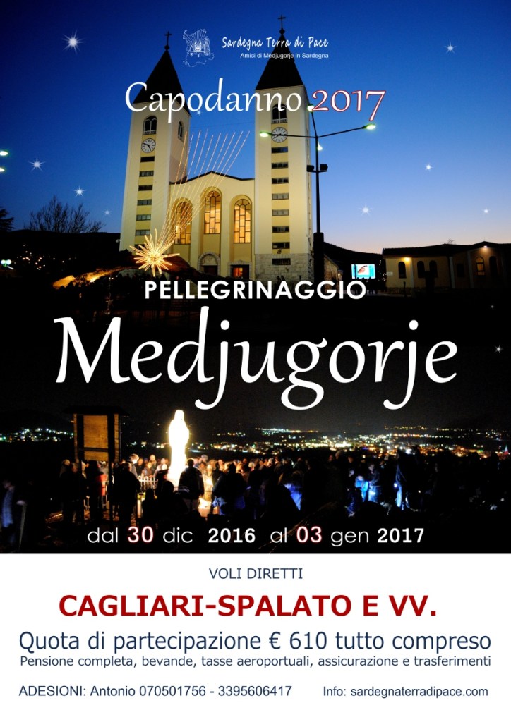 Pellegrinaggio Medjugorje Capodanno 2017 07 lunedì Nov 2016 Dimensione originale su 849 × 1201 ≈ Lascia un commento Locandina Pellegrinaggio Medjugorje Capodanno 2016/2017 – Foto di Sardegna Terra di Pace – Tutti i diritti riservati
