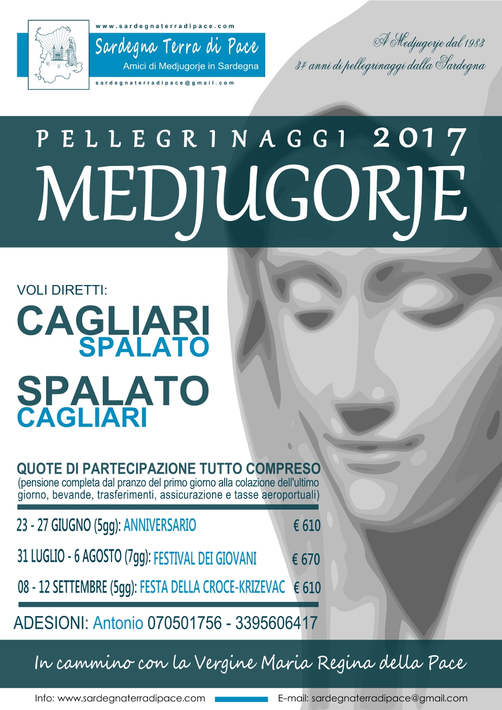 Il gruppo Amici di Medjugorje in Sardegna, che fin dai primi anni (1983), ha accompagnato migliaia di fedeli a Medjugorje, a 34 anni dal primo pellegrinaggio dalla Sardegna, in questo 36esimo anno delle apparizioni, propone il nuovo programma di viaggio.