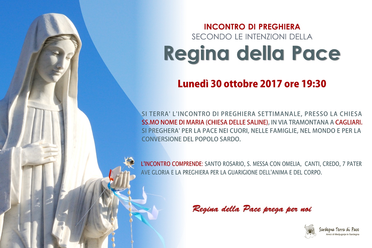 Incontro di Preghiera del gruppo Amici di Medjugorje in Sardegna Lunedì 30 Ottobre 2017 28 sabato Ott 2017 Dimensione originale su 1200 × 800 ≈ Lascia un commento Locandina Incontro di Preghiera Settimanale del 30 Ottobre 2017