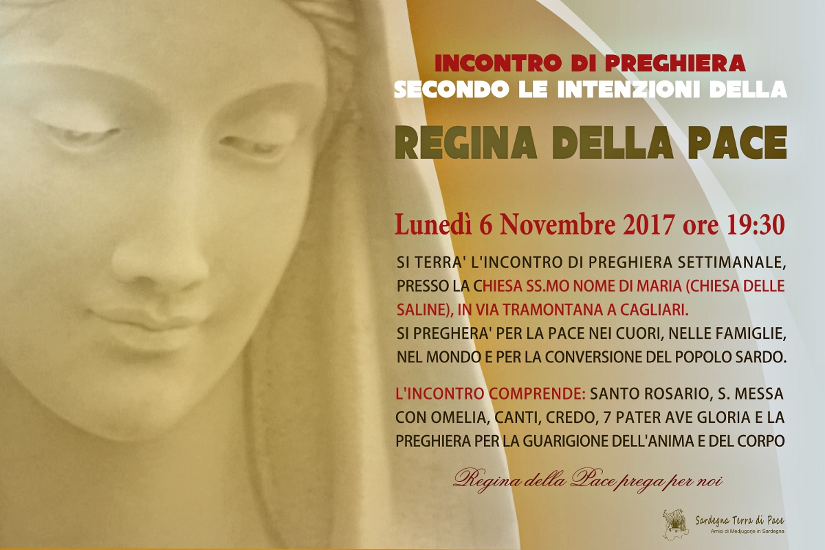 Incontro di Preghiera del gruppo Amici di Medjugorje in Sardegna Lunedì 6 Novembre 2017 05 domenica Nov 2017 Dimensione originale su 1200 × 800 ≈ Lascia un commento Locandina Incontro di Preghiera Settimanale del 06 novembre 2017
