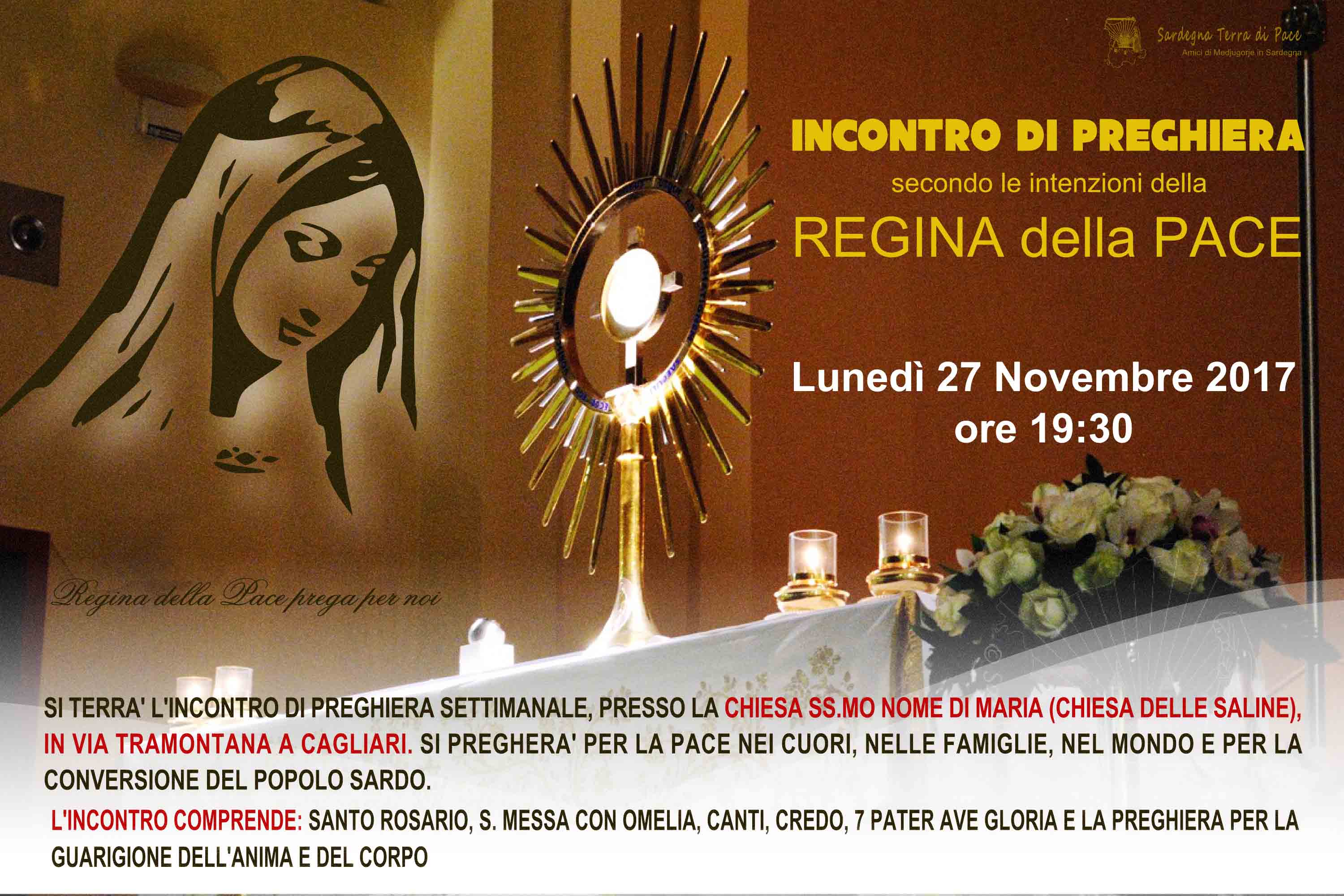 Incontro di Preghiera del gruppo Amici di Medjugorje in Sardegna Lunedì 27 Novembre 2017 24 venerdì Nov 2017 Dimensione originale su 3000 × 2000 ≈ Lascia un commento Locandina Incontro di Preghiera Settimanale del 27 novembre 2017