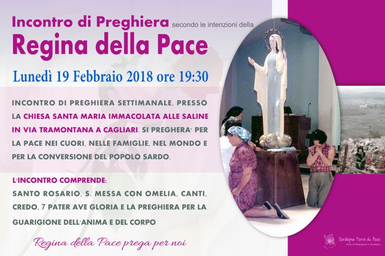 Incontro di Preghiera del gruppo Amici di Medjugorje in Sardegna Lunedì 19 Febbraio 2018 15 giovedì Feb 2018 Dimensione originale su 1200 × 800 ≈ Lascia un commento Locandina Incontro di Preghiera Settimanale del 19 Febbraio 2018