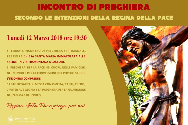 Incontro di Preghiera del gruppo Amici di Medjugorje in Sardegna Lunedì 12 Marzo 2018 10 sabato Mar 2018 Dimensione originale su 1100 × 733 ≈ Lascia un commento Locandina Incontro di Preghiera Settimanale del 12 Marzo 2018