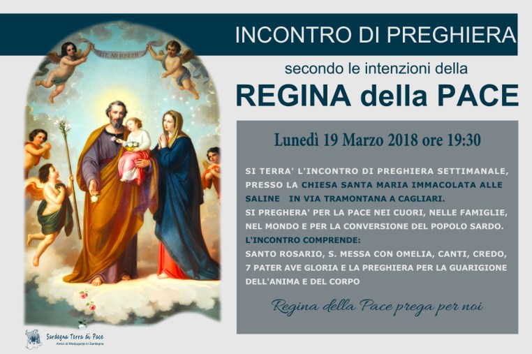 Incontro di Preghiera del gruppo Amici di Medjugorje in Sardegna Lunedì 19 Marzo 2018 17 sabato Mar 2018 Dimensione originale su 1100 × 733 ≈ Lascia un commento Locandina Incontro di Preghiera Settimanale del 19 Marzo 2018