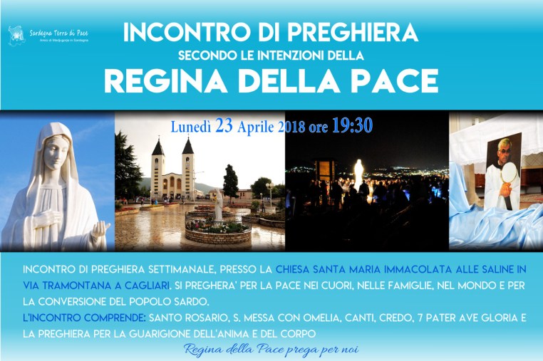 Incontro di Preghiera del gruppo Amici di Medjugorje in Sardegna Lunedì 23 Aprile 2018 21 sabato Apr 2018 Dimensione originale su 1200 × 800 ≈ Lascia un commento Locandina Incontro di Preghiera Settimanale del 23 Aprile 2018