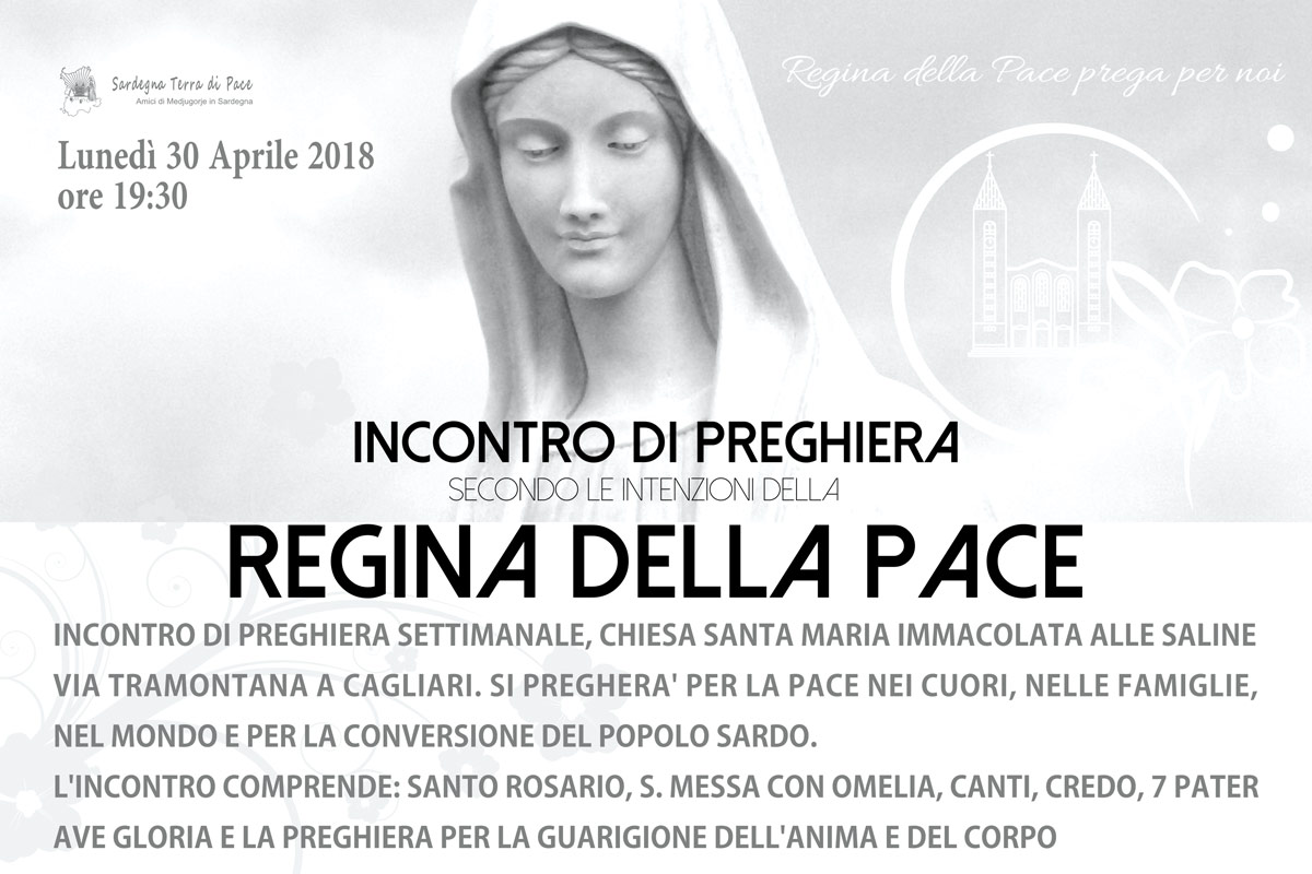 Incontro di Preghiera del gruppo Amici di Medjugorje in Sardegna Lunedì 30 Aprile 2018 28 sabato Apr 2018 Dimensione originale su 1200 × 800 ≈ Lascia un commento Locandina Incontro di Preghiera Settimanale del 30 Aprile 2018