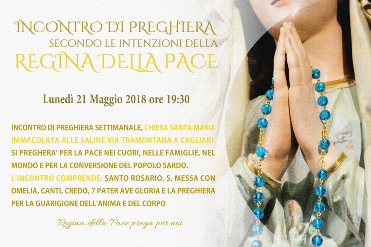Incontro di Preghiera del gruppo Amici di Medjugorje in Sardegna Lunedì 21 Maggio 2018 19 sabato Mag 2018 Dimensione originale su 1400 × 933 ≈ Lascia un commento Locandina Incontro di Preghiera Settimanale del 21 Maggio 2018