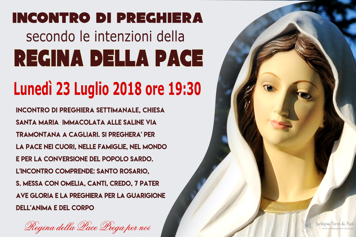 Incontro di Preghiera del gruppo Amici di Medjugorje in Sardegna Lunedì 23 Luglio 2018 21 sabato Lug 2018 Dimensione originale su 1200 × 800 ≈ Lascia un commento Locandina Incontro di Preghiera Settimanale del 23 Luglio 2018