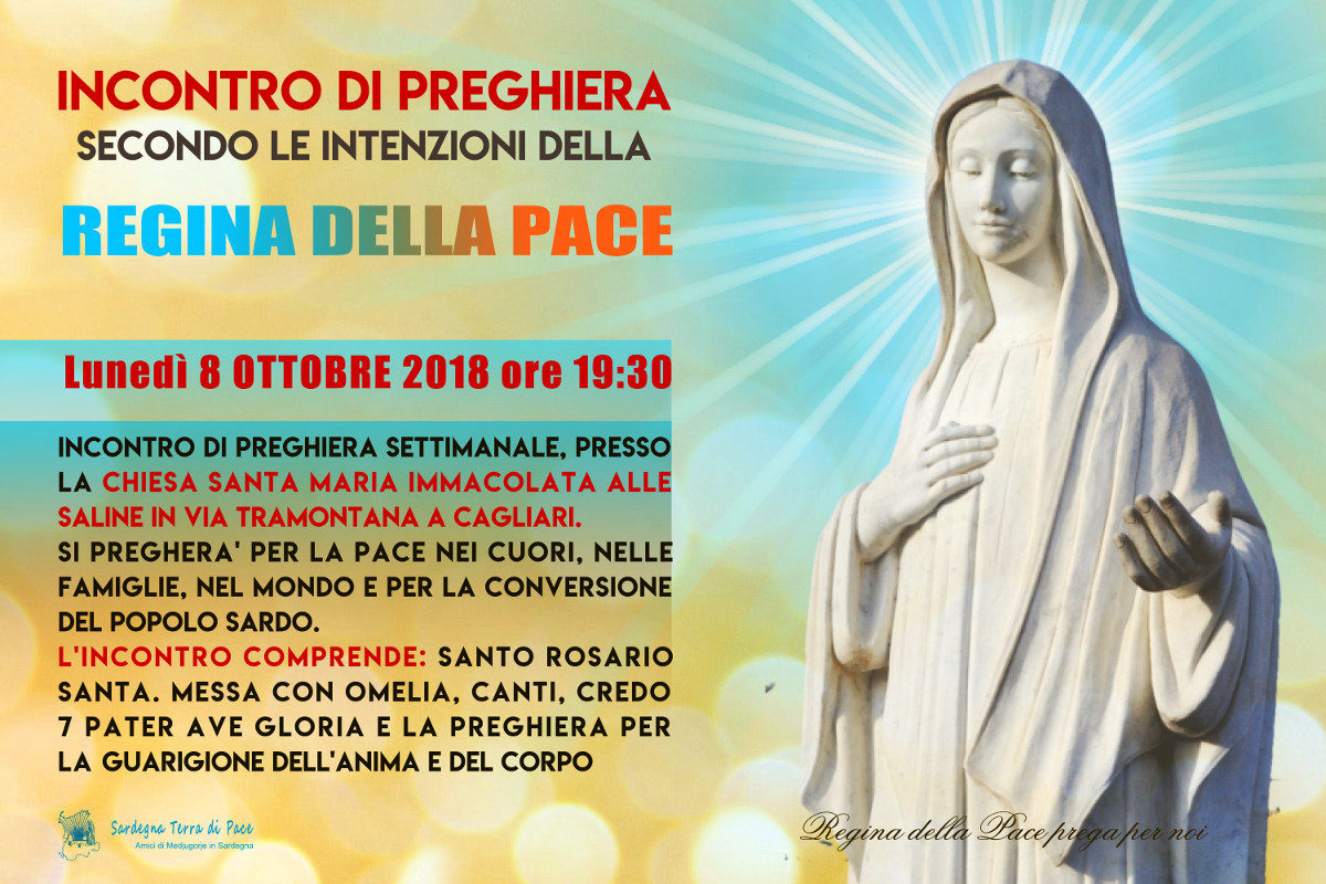 Incontro di Preghiera del gruppo Amici di Medjugorje in Sardegna Lunedì 8 Ottobre 2018 05 venerdì Ott 2018 Dimensione originale su 1200 × 800 ≈ Lascia un commento Locandina Incontro di Preghiera Settimanale del 8 Ottobre 2018