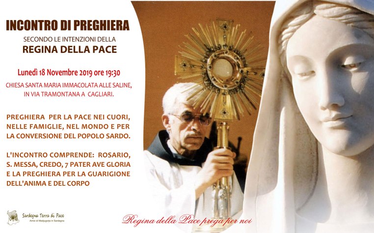 Incontro di Preghiera del gruppo Amici di Medjugorje in Sardegna Lunedì 18 Novembre 2019 16 sabato Nov 2019 Dimensione originale su 1523 × 950 ≈ Lascia un commento Locandina Incontro di Preghiera Settimanale del 18 Novembre 2019