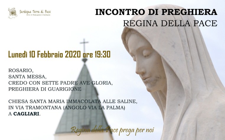 Incontro di Preghiera del gruppo Amici di Medjugorje in Sardegna Lunedì 10 Febbraio 2020 08 sabato Feb 2020 Dimensione originale su 1200 × 750 ≈ Lascia un commento Locandina Incontro di Preghiera Settimanale del 10 Febbraio 2020