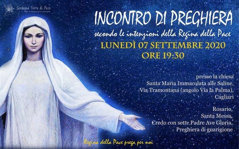 Incontro Preghiera Amici Medjugorje Sardegna 07 Settembre 2020 ore 19:30 01 martedì Set 2020 Dimensione originale su 1400 × 875 ≈ Lascia un commento Incontro Preghiera Amici Medjugorje Sardegna 7 Settembre 2020