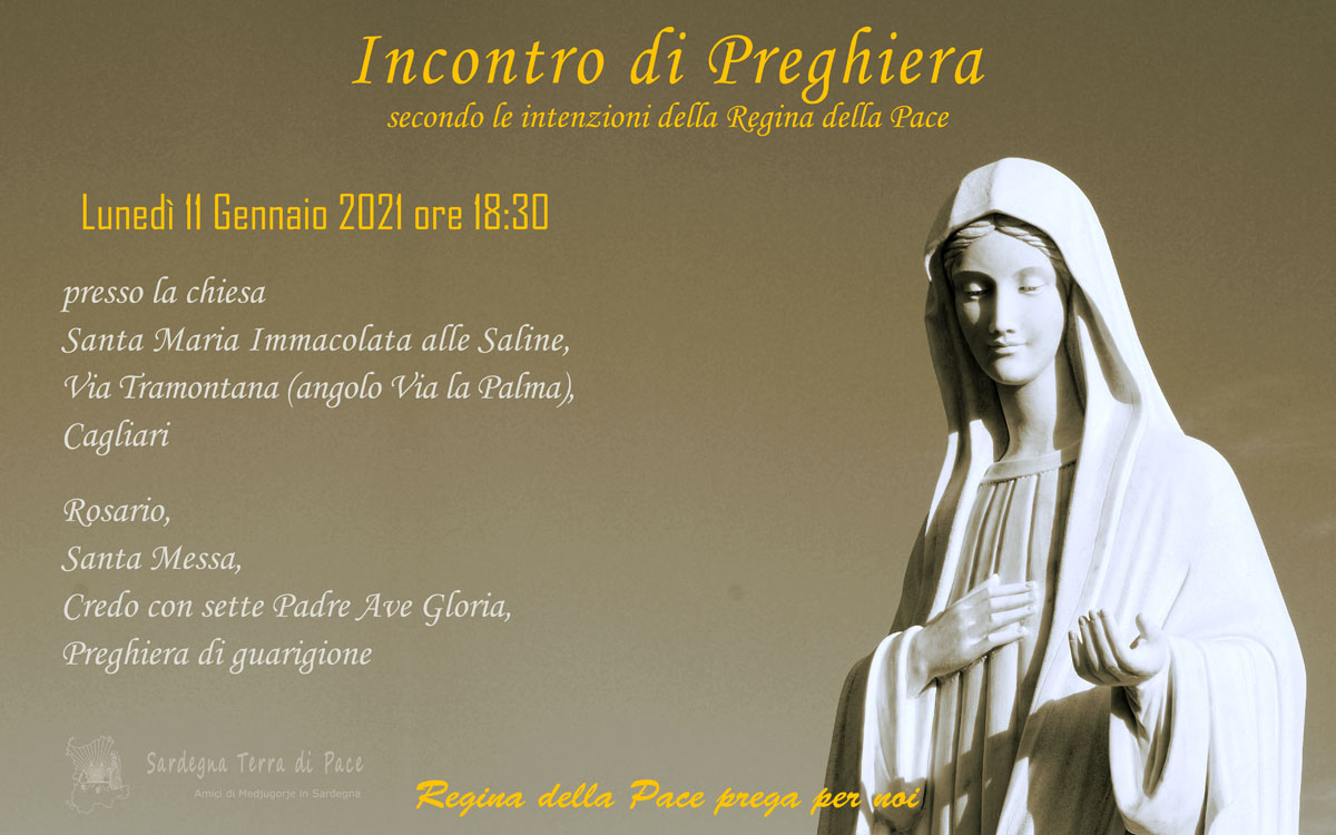 Incontro Preghiera Amici Medjugorje Sardegna 11 Gennaio 2021 ore 18:30 09 sabato Gen 2021 Dimensione originale su 1200 × 750 ≈ Lascia un commento Incontro Preghiera Amici Medjugorje Sardegna 11 Gennaio 2021
