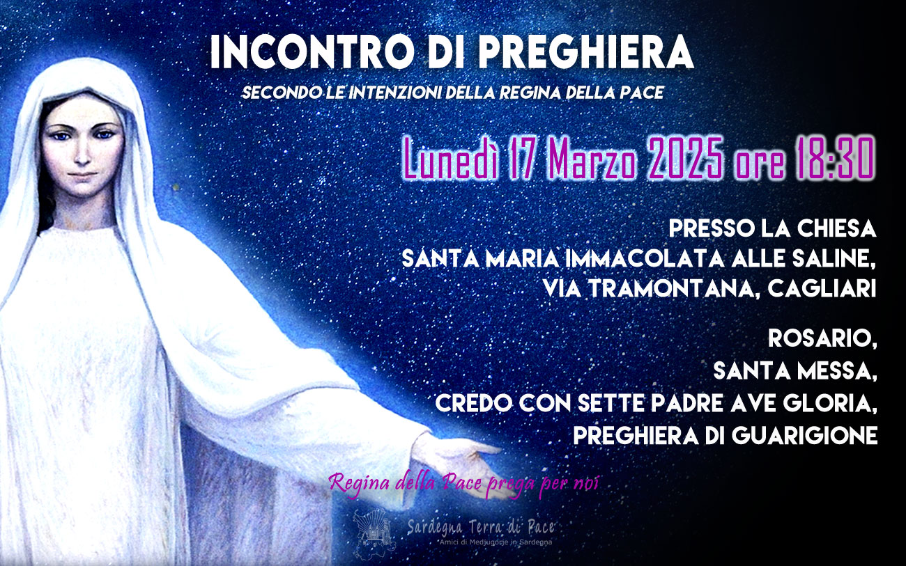 14 venerdì Mar 2025 Dimensione originale su 1300 × 813 ≈ Commenti disabilitati su Incontro Preghiera Amici Medjugorje Sardegna 17 Marzo 2025