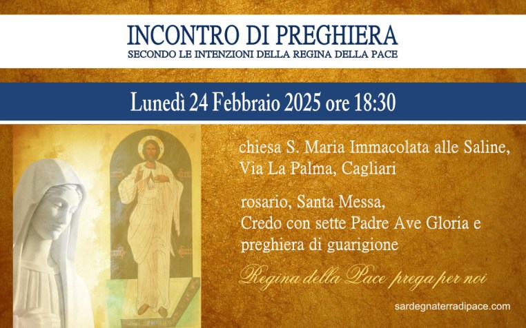 22 sabato Feb 2025 Dimensione originale su 1199 × 750 ≈ Commenti disabilitati su Incontro Preghiera Amici Medjugorje Sardegna 24 Febbraio 2025
