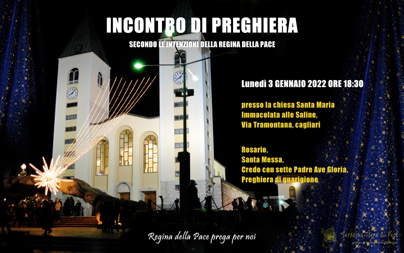 21 martedì Dic 2021 Dimensione originale su 1300 × 813 ≈ Commenti disabilitati su Incontro Preghiera Amici Medjugorje Sardegna 3 Gennaio 2022 Incontro Preghiera Amici Medjugorje Sardegna 3 Gennaio 2022