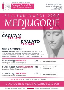 Il gruppo Amici di Medjugorje in Sardegna, che a partire dal 1983, ha accompagnato migliaia di fedeli a Medjugorje, a 41 anni dal primo pellegrinaggio dalla Sardegna, in questo 43esimo anno delle apparizioni, propone per il 2024 i seguenti pellegrinaggi a Medjugorje.